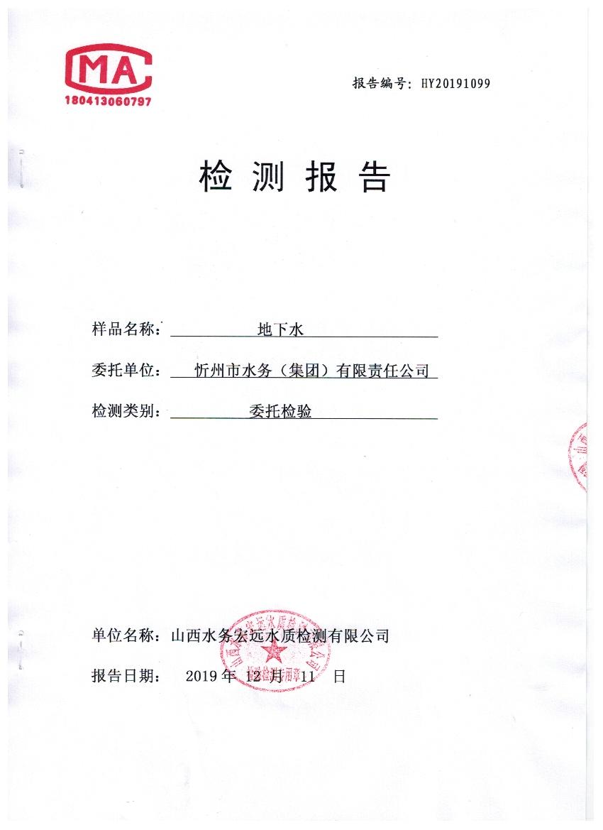 2019年忻州城區(qū)公共供水南水廠、三水廠水源水39項地下水水質(zhì)全分析