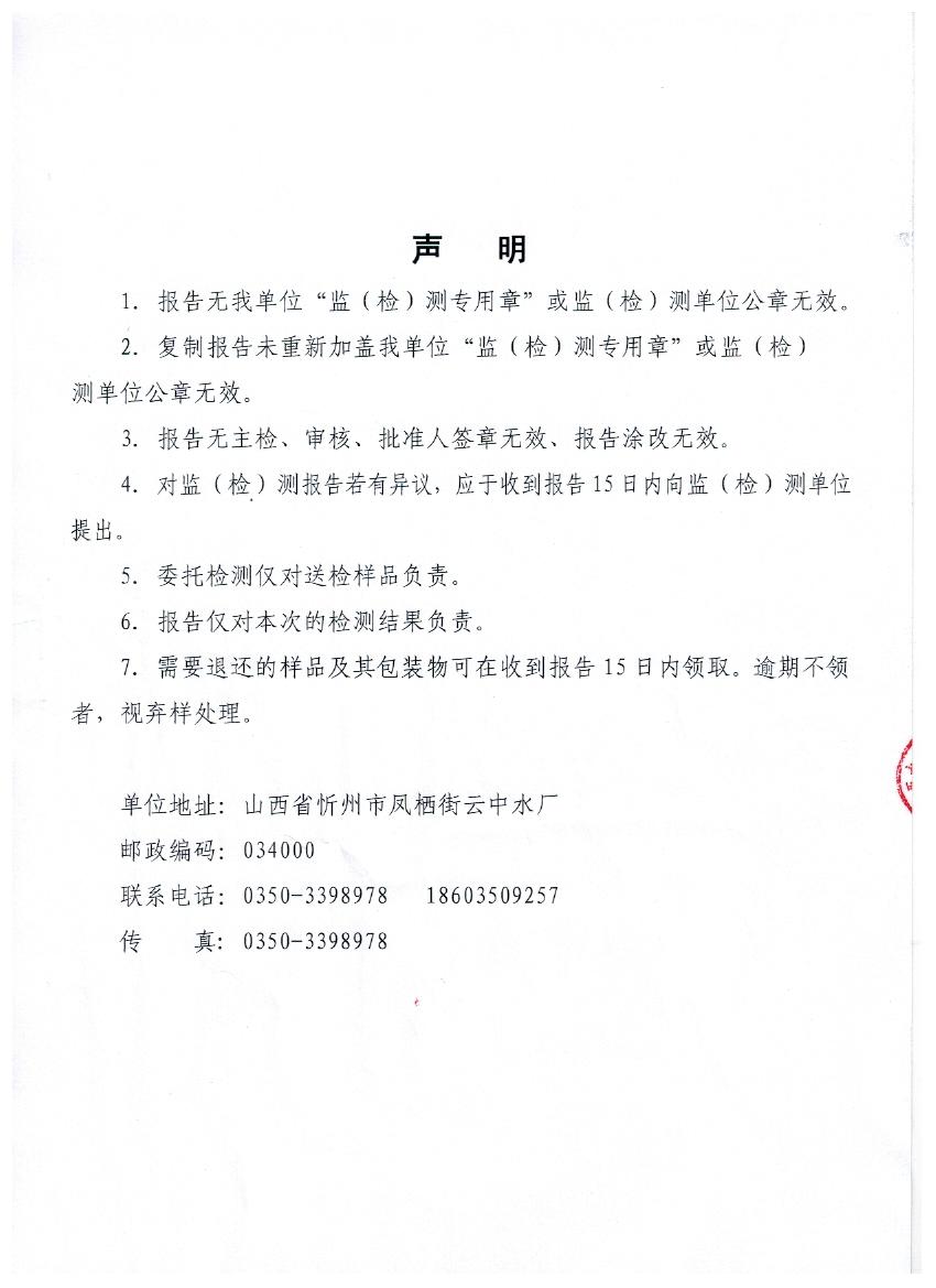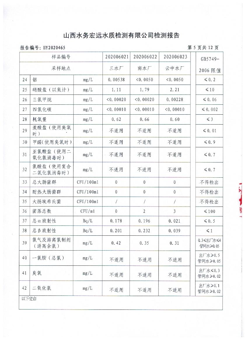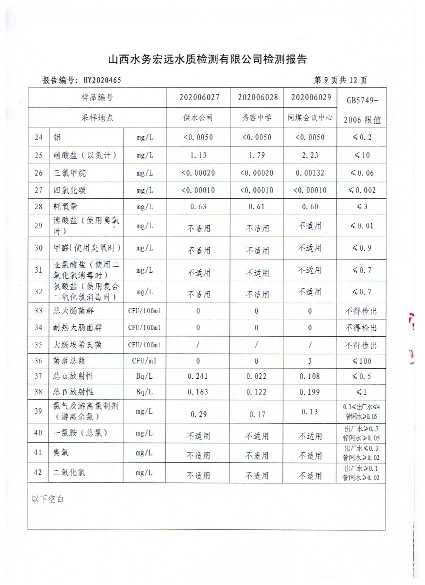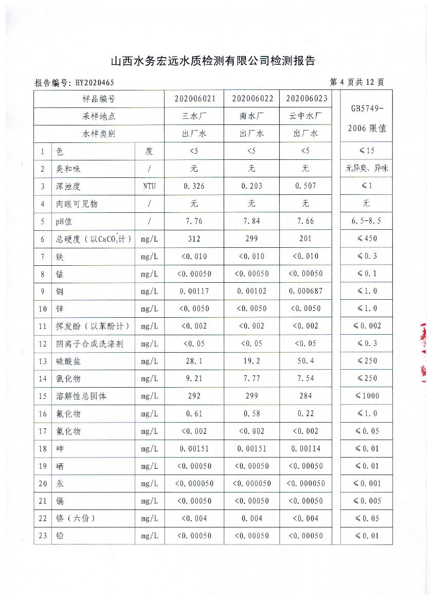 忻州城區(qū)公共供水水源水、出廠水、管網水、管網末梢水2020年6月份水質信息公示
