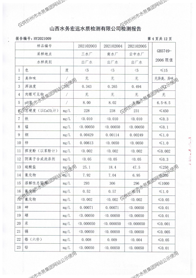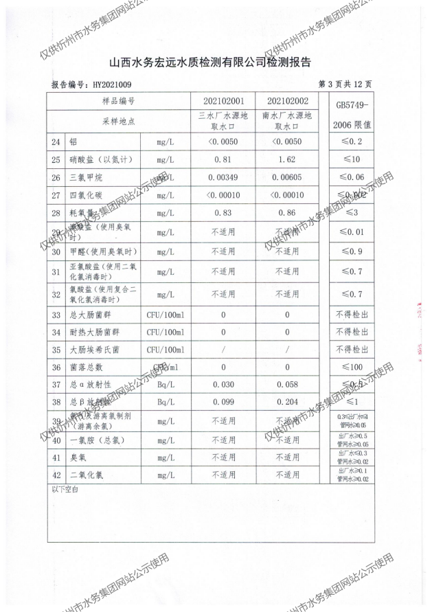 忻州城區(qū)公共供水水源水、出廠水、管網(wǎng)水、管網(wǎng)末梢水2021年2月份水質信息公示