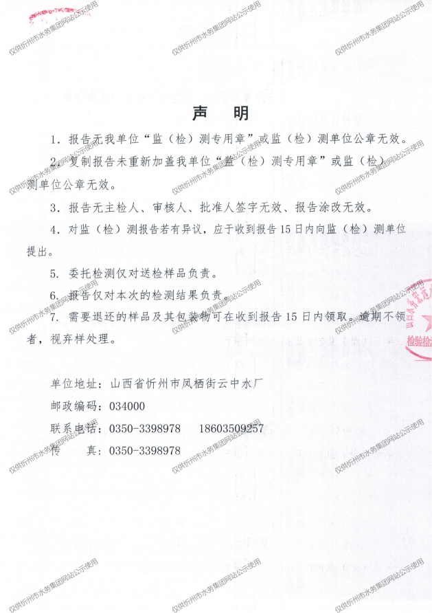忻州城區(qū)公共供水水源水、出廠水、管網(wǎng)水、管網(wǎng)末梢水2024年4月份水質(zhì)信息公示